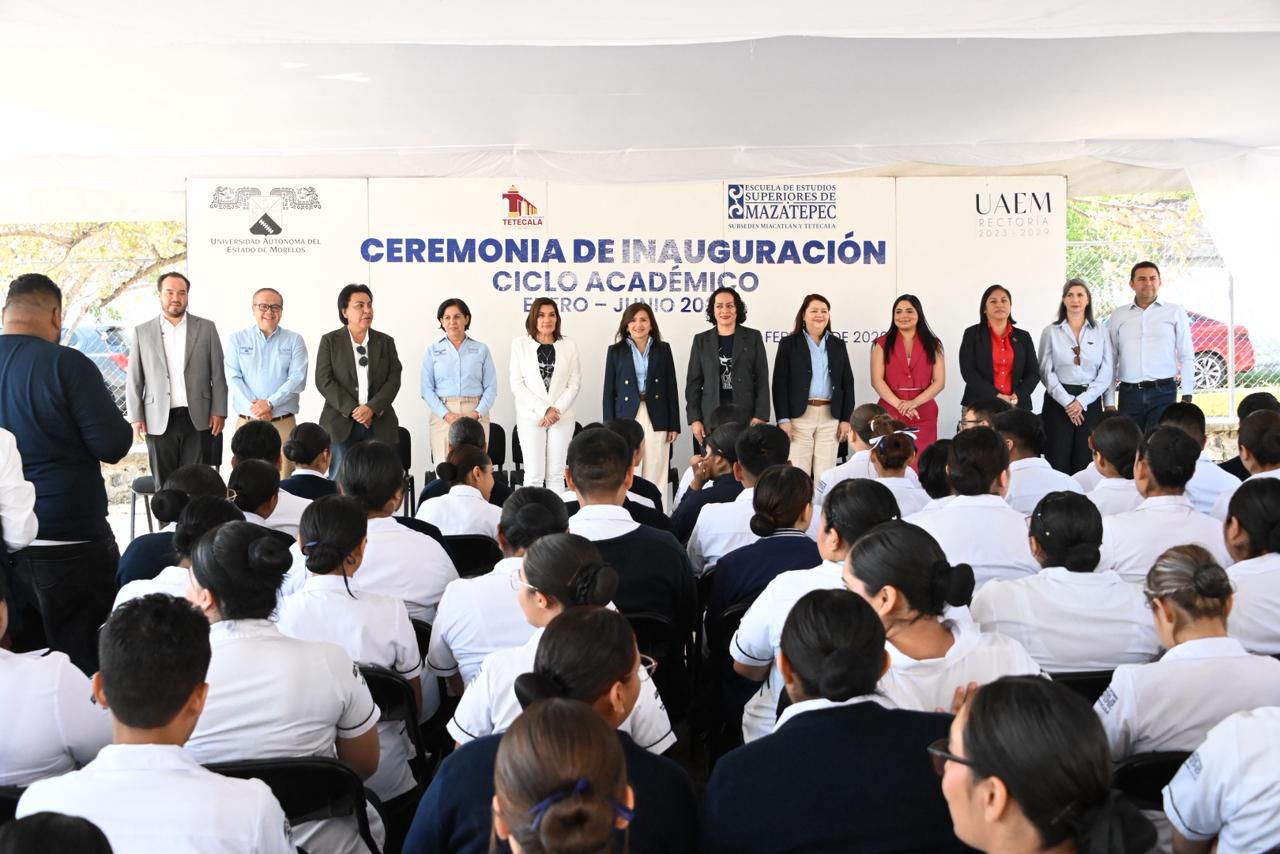 La rectora de la Universidad Autónoma del Estado de Morelos (UAEM), Viridiana Aydeé León Hernández, encabezó la ceremonia de bienvenida al ciclo académico enero-junio 2026, esta mañana desde la Subsede Tetecala de la Escuela de Estudios Superiores (EES) de Mazatepec.